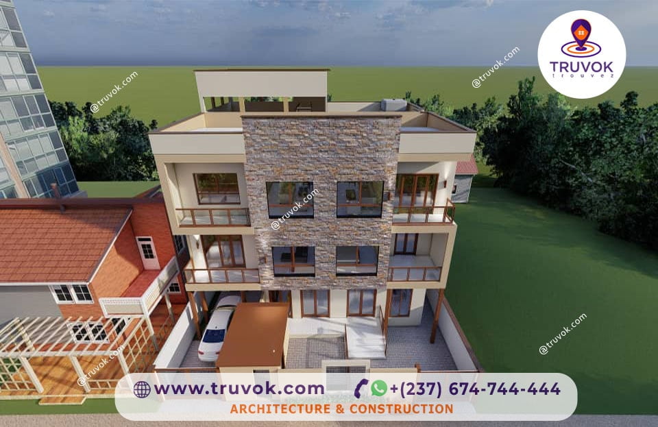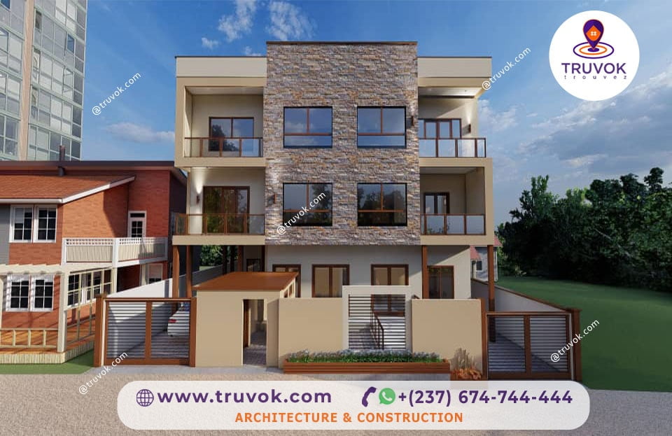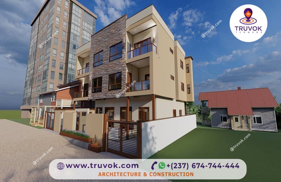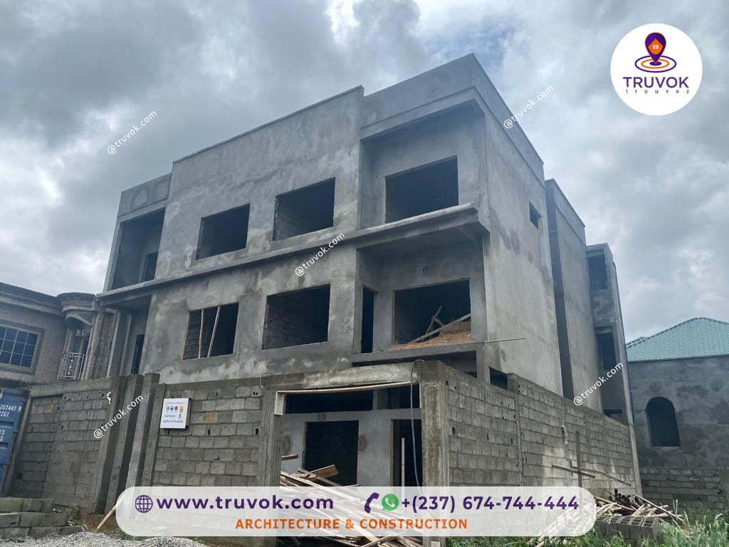 Un immeuble R+2, accueillant des espaces résidentiels et logement, situé à Yassa, Douala.